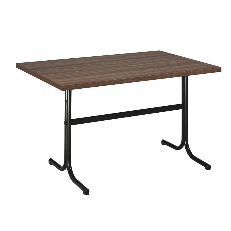 A Mesa Interior PLASENCIA NOG combina design moderno com robustez, sendo a escolha perfeita para ambientes interiores que exigem estilo e durabilidade. Com uma estrutura em tubo de aço plastificado preto e tampo de melamina em acabamento nogueira, esta mesa adapta-se perfeitamente a restaurantes, cafés, escritórios e salas de espera.